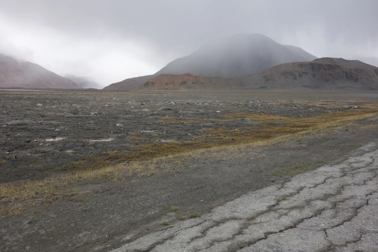 But it lasted only a little while. The road led along a fence that marks a neutral zone between Tajikistan and China. Apparently at one point, the Chinese border was only seven kilometres away from us. And the landscape was as breath taking as the altitude.