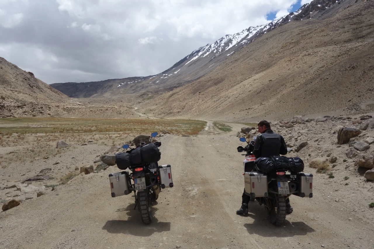 Shortly before we had met an Austrian biker who had ranted about the terrible road conditions on the so called Southern Route. It goes along the Afghan border and according to the Austrian, it was impossible to ride. Deep sand and steep slopes made it no fun at all. The GS guys hence decided to take the northern route. We wanted to find out for ourselves if the Austrian was right. And went south. Off to new heights.