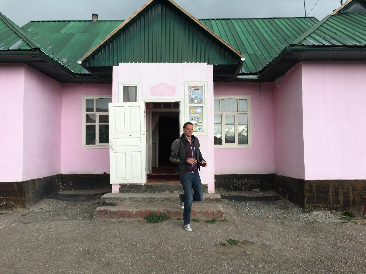 Sary Tash consists of a gas station and a few houses. Most importantly it is a junction of two streets: the Pamir Highway going south and the A371 coming from Kaxgar in the east. It connects Kyrgyztan with China and is an important trade route. We stayed there to get used to the altitude. And this was our home for the night.